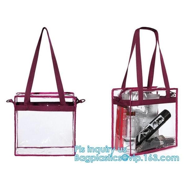 Eco-Friendly Customized PVC Bag for Shopping, cosmetic packaging handle zipper top pouch printed transparent tote shoppe Images |
